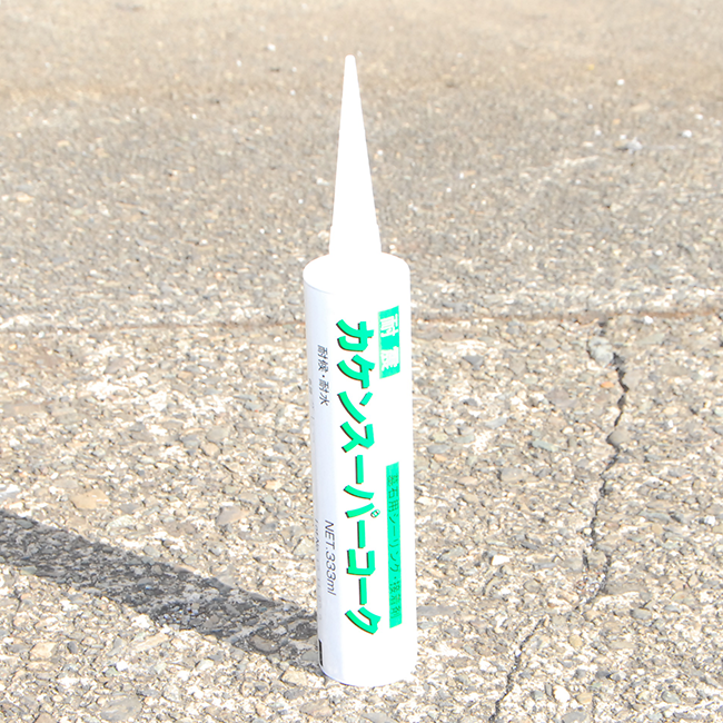 継ぎ目をマスキングした上に、耐震コーキング剤を流し込みます。