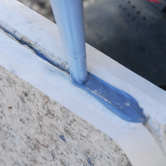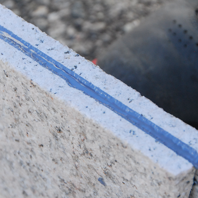 マスキングをはがすと墓石の継ぎ目が隙間なくコーキングされます。