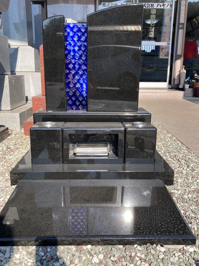 デザイン墓石 インド産 黒御影石×川崎ガラス